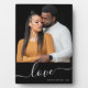 Moderne Script Overlay Personalisierten Paare Foto-Plakette mit eleganter "Liebe" Typografie. Fügen Sie Ihr eigenes Foto und eine personalisierte Nachricht ein, um dieses einfache und elegante Foto-Display zu einem eigenen Design zu machen. Perfektes Valentinstag Geschenk für ihn, Valentinstag Geschenk für sie, für Freundin, Freund, Ehemann oder Ehefrau.