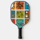 Dieses Pickleball-Paddel hat ein modernes Design von einem smorgasbord aus der Mitte des Jahrhunderts moderne Grafik in Retro-Farben.