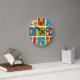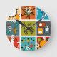 Diese Wanduhr hat ein modernes Design von einem smorgasbord aus der Mitte des Jahrhunderts moderne Grafik in Retrofarben.