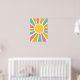 Modernes Sonnenburstposter der 1970er Jahre. Perfekt fröhliche boho Blume Power Sonnenschein Mauer Kunst für ihn/sie. Hellrosa, aquamarin und Senfgelb schmücken dieses sonnige Kunstwerk.