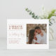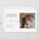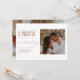 Eine zeitgenössische Hochzeitseinladung mit einem geteilten Layout mit einem sanften, romantischen Foto des glücklichen Ehepaares, das auf der einen Seite einen schlichten, weißen Hintergrund hat und auf der anderen eine elegante Typografie anbietet. Die in warmen Tönen gehaltenen Serif- und Script-Schriftart sorgen für mehr Raffinesse. Kommt mit einem kompletten Cover Foto zurück für eine Foto fokussierte Liebe Geschichte.