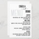 Dieses moderne Hochzeitsmenü besticht durch einen schlichten, personalisierten, schwarzen Text auf einem knusprigen, weißen Hintergrund, der das Wesen des Minimalismus verkörpert. Das Design ist elegant und zeitlos, ideal für Paare, die Einfachheit und Eleganz schätzen. Entdecken Sie mehr Hochzeitsstipps in unserer Kollektion, wie zum Beispiel rett-the-date Karten, Programme, Menüs, Aufkleber, Umschläge und vieles mehr. Jedes Stück ergänzt Ihre Einladung wunderbar und sorgt für ein einheitliches Aussehen für Ihren besonderen Tag.