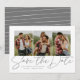 Mit drei senkrechten Fotos und einem modernen Drehbuch "Save the Date" ist diese Karte der perfekte Weg, um Ihre Verlobung und kommende Hochzeit zu Freunden und Familie anzukündigen. Der schicke graue Text ist gewagt und modern, aber dennoch raffiniert. Der anpassbare Text auf der Vorderseite hat Platz für Namen, Datum, Ort und andere Informationen wie eine Hochzeitswebsite. Die Rückseite ist ein neutrales, grau-weiß gestreiftes Muster. Die Farbe kann bearbeitet werden, indem Sie auf "Anpassen" klicken.
