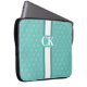Modernes Strip Monogramm mit Designer Muster Blue Laptopschutzhülle