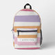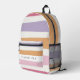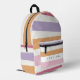 Modernes Striptes Pfirsich, Pink, Lavendel & White Girl's Back to School Clean Linien, sanfte Farbe und eine persönliche Touch - dieser moderne gestreifte Rucksack verbindet Einfachheit mit Charme. Dieses Design mit einem sich wiederholenden Muster horizontaler Streifen in einer warmen, gedämpften Farbpalette aus Pfirsich, hellrosa, Lavendel und knusprig weiß, ist perfekt für diejenigen, die ein minimalistisches Aussehen mit einer spielerischen Drehung Liebe. Fügen Sie einen personalisierten Namen oder ein Monogramm hinzu, um es wirklich einzigartig zu machen - ideal für Schulen, Reisen, Tanzkurse oder Schlittenfahrer!