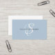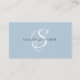 Das trendige, stilvolle monogramm Visitenkartendesign bietet Ihren Einstieg in ein wunderschönes Kalligrafieschrift mit Schnörkeln, die Ihren Namen umhüllen. Auf der Rückseite ist Platz für Ihren beruflichen Titel, Kontaktinformationen, Social Media und Ihre Website-Adresse. Diese Version befindet sich in der staubblauen und schwarz-weißen Kombination.