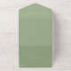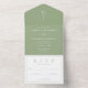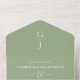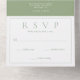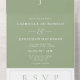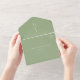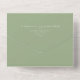 Eine moderne, alleinstehende Einladung zur Hochzeit ist Salbei grün mit weißer Typografie. Diese Einladung ist perfekt für diejenigen, die eine einfache, aber elegante Hochzeit wünschen. Ihre Gäste reißen einfach die UAWG ab, die mit Ihrer Rücksendeadresse vorgedruckt wurde, und schicken sie dann an Sie zurück. Auf der Vorderseite der Karte können Sie Ihren Gastnamen und Ihre Postanschrift handschreiben