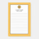 Ein modernes, trendiges Notizblock mit minimalistischem Design und einem eleganten, monogramm-Medaillon. Individuelle Name oder Sondertext auf einem schlichten, weißen Hintergrund, gerahmt durch einen hellen Senfgelben Rahmen. Personalisieren Sie die Eingabe mit den angegebenen Feldern, oder wenden Sie sich mit der Schaltfläche 'Nachricht' an den Designer, um Hilfe zu erhalten.