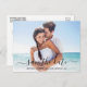 Modernes Trendy Calligraphy Script Couple Foto Save the Date Verlobung Ankündigung Postcard