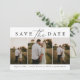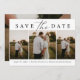 Set Sie den Ton für Ihren besonderen Hochzeitstag mit dieser modernen Trio Save the Date Karte. Das Design umfasst subtile schwarze Serif- und Kalligraphie-Schriftart, gepaart mit klassischen kursiven Detail-Schriftart. Spielen Sie drei Ihrer Lieblings-Verlobung-Fotos auf der Rückseite Ihres Save the Date und zeigen Sie ein vollformatiges Bild auf der Vorderseite. Geben Sie Ihren Namen, das Hochzeitstag, den Ort und die Website ein.