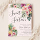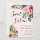 Eine moderne tropische, süße 16-Einladung für ein sommerliches Party. Dieses trendige Lokal bietet Blume aus Aquarellfarben, Plumeria-Blumen, Blätter aus Palmen und Ananas.