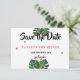 Festival Thema Hochzeit Speichern Sie das Datum. Das grüne Grün mit Monsteria-Blätter und rosafarbenen Blume. Ein modernes Festivalthema, das Ihren Gast zu Ihrer Hochzeit einlädt. Alle Informationen sind einfach an Ihre Informationen angepasst. Namen und Daten Teil einer Hochzeitssuite von stationären.