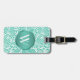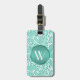 Modernes, üppiges tropisches Damast-Muster in Aqua und Weiß mit modernem Rundscheibenrahmen und Monogramm. Personalisieren Sie Ihre Initialen, Ihren Namen oder einen anderen Text, indem Sie den Beispieltext in der Entwurfsvorlage und die Kontaktinformationen auf der Rückseite des Gepäckanhängers ersetzen. Sie können Schriftart und Schriftart ändern, um Ihren Text anzupassen.
