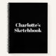 Modernes, minimalistisches Schwarz-Weiß-individuelle Name personalisierte Skizze / Notizbuch. Vollständig anpassbarer weißer Text auf schlichtem schwarzen, soliden Hintergrund. Farben sind bearbeitbar.
