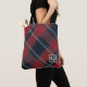 Ausgezeichnet und elegant, diese rot-blaue karierte Tasche mit einem Monogramm ist der perfekte Urlaub, Geburtstag oder Muttertagsgeschenk. Teil einer Sammlung von Parcel Studios.