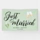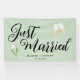 Modernes Just Married Wedding Reception Banner ist ein einfaches Banner für Hochzeitsfeiern für Ihr Hochzeitsempfang Party. Dieses elegante "Just Married"-Design macht den Spaziergang zum Pärchen des Ehepaares. Die perfekte Ausstattung für Hochzeitsfeiern mit Blumen-Tulpen und Champagner-Gläsern. Passen Sie mit dem Namen der Braut und des Bräutigams und dem Hochzeitsdatum der Hochzeitsfeier an.