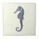 Vintage Abbildung eines Seepferds in blau auf Elfenbeinweiß für den Liebhaber des Ozeans und des Meereslebens