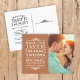 Moderne Vintage Foto Hochzeit Speichern Sie das Datum Postkarte. Das Design besticht durch eines Ihrer Fotos in der Verlobung mit einem eleganten, Vintagen, inspirierten Label-Overlay mit Platz für Ihren Hochzeitstag, Braut- und Bräutigamen in klassischer Typografie und verzierten Schwirbelstücken. Fügen Sie eine Nachricht oder mehr Informationen für Gäste in den Raum auf der Rückseite. Verwenden Sie die Entwurfswerkzeuge, um Schriftart anzupassen und Text zu verschieben, um Ihr eigenes, einzigartiges Postkartendesign zu erstellen.
