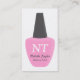 Eine moderne und zeitgenössische Visitenkarte mit einer rosa Nagellackflasche mit Raum für Personifizierung des Monogramms. Auf der Rückseite ist die Nagellackbürste. Groß für Make-upkünstler, Stylisten und die in den Schönheits-, Haar- und Salon-, Wellness-Center-, Pedicure- und Maniküregeschäften.