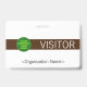 Dieses elegante Abzeichen-Design beinhaltet die Meldung "VISITOR" und einen benutzerdefinierbaren Firmennamen oder eine andere benutzerdefinierte Nachricht. Ein solches Abzeichen könnte dazu verwendet werden, zu identifizieren, dass jemand am Arbeitsplatz oder in einem Unternehmen ein autorisierter Gast/Besucher ist. [~Z0000307]