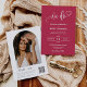 Diese Einladung beinhaltet einen eleganten "We do" Kalligraphie und einen einfachen serifenlosen Typografie-Schriftart mit Bogenform Foto und QR-Code in einem viva magenta Hintergrund. Die Einfachheit und das saubere Design dieser Einladung funktioniert gut mit allen Hochzeitsthemen und definitiv eine großartige Ergänzung zu Ihrer Hochzeit. Versuchen Sie mit dieser modernen, Öko-freundlichen Einladung grün zu gehen, indem Sie zusätzliche UAWG- und Detailkarten abschneiden. Fügen Sie einfach Ihren eigenen QR-Code auf der Rückseite der Einladung für Ihre Gäste zu UAWG und erfahren Sie mehr über Ihre Hochzeit. Passen Sie die Namen und Formulierungen in wenigen Schritten an und personalisieren Sie die Einladungskarte mit Ihrem Foto des glücklichen Paares, um ihr eine einzigartige und persönliche Touch zu geben. Bitte beachten Sie: Die elegante Kalligrafie der Texte "We Do", "Dinner and Dancing to follow" und "Details + uAwg" sowie grafische Kunstwerke und andere grafische Elemente können nicht bearbeitet, gelöscht oder verschoben werden. Sie sind repariert. Wenn Sie die Farbe ändern müssen, können Sie die Einladungskarte anpassen. Sie können die Einladung anpassen und personalisieren, um Ihren Hochzeitsbedürfnissen gerecht zu werden. Klicken Sie einfach auf die Einladung. Sie können diese Einladung ganz einfach mit Ihrem eigenen Text personalisieren und digital mit Ihren Gästen teilen - sei es durch Text, E-Mail oder Social Media. Wenn Sie es vorziehen, haben Sie auch die Möglichkeit, Ihren Gästen eine gedruckte Version zu schicken. Oder Sie können beides tun - senden Sie eine Digitalversion und folgen Sie einer gedruckten Kopie für eine persönliche Touch!