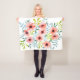 Aquarellfarbene rosa Blume und grün-blaue Blätter Illustration auf Fleecedecke.