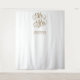 Dieser elegante Wandteppich präsentiert Herrn und Frau in anmutigem Kursiv, zusammen mit dem Familiennamen des Paares und dem Hochzeitstag in fett goldenen Schriften auf einem sauberen weißen Hintergrund. Es ist ein perfekter Hintergrund für zeitlose Hochzeitsmomente oder als dekoratives Element bei neuvermählten Fotoshootings.