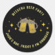 Modernes Weekend Bierbrauer Party Classic Round Sticker. Dieser Aufkleber hat einen einfachen Text und schwarzen Hintergrund mit Bierbrillen Illustrationen. Editieren Sie einfach Details, um es zu verwenden. Sie können es für Wochenende Party, Büro-Party von Sommerferien Party verwenden.