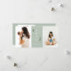 Elegante Imitate mit blassem goldfarbenem Rahmen mit winterbeerigen Zweigen auf festlich minziöser, grün gefärbter Basis. Entwurfsfeatures, gerahmtes fett formatiertes WEIHNACHTEN, Vorlagentextzeilen für Namen, Jahr und Nachricht mit zwei Fotos vorne und zwei Offset-Foto-Leerzeichen hinten.