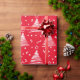 Ein modernes, handgezeichnetes Wrapping Paper von weißen Weihnachtsbäumen auf Rot