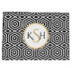 Mit Monogramm modernes Weiß auf schwarz polygonal geometrisch nahtlos Muster. Maßgeschneidertes Monogramm mit goldenen und weißen Akzenten.