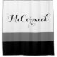 Dieser moderne Duschvorhang ist mit Streifen in Weiß, Grau und Schwarz gestaltet und ist mit dem Namen in elegantem, schwarzen Drehbuch lassend personalisiert. Dieses Design passt perfekt zu einem gepflegten und erfrischenden Bad-Dekor oder einfach nur, wenn Sie daran denken, Ihrem Bad eine aktualisierte Gesichtsbestuhlung zu geben.