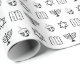 Moderner Star von David, hebräisch Magen David, Dreidel, menorah, Torah, schwarz-weiß Muster elegante Geschenkpapier. Schwarzes jüdisches Ikonenmuster auf weißem Hintergrund. Dieses Papier ist ideal für Hanukkah, Chanukah, Bar mitzvah, Fledermaus Mitzvah, Shabbat und jüdischen Feiertagen.