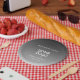 Modernes Werbelogo und Text | Editierbare Farbe Pappteller