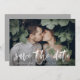 Moderne Save the Date-Karte mit "Save the Date" in einem weißen Aquarellskript, das Ihr vollblütiges horizontales Verlobung-Foto überragt. Personalisieren Sie die Vorderseite des Fotos Save the Date mit Ihren Namen, Hochzeitsdatum, Hochzeitsort, etc. Die Karte kehrt auf einen soliden grauen Hintergrund oder eine Farbe Ihrer Wahl zurück. Fügen Sie zusätzlichen Text und Bilder für ein einzigartiges Design hinzu! Verfügbar zum sofortigen Download, gedruckte Karten oder beides.
