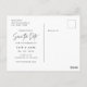 Eine maßgeschneiderte Hochzeit spart die Datums-Postkarte mit einfachem weißem Rahmen-Design mit modernem Handskript.