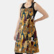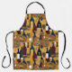 Schöne künstlerische Jugendstil-Schürze mit Weinflasche und Glasmuster.