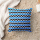 Dieses moderne Kissen zeichnet sich durch ein trendiges Zickzack Muster in Schwarz, Blau und Weiß aus. *Mockup von Freepik*