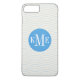 Dress up and protect your iphone with this personalisierte, trendige und stilvolle Zickzack zag striped pattern with a round circle design element that is custom with your first, Middle and last name initials. Helles Aqua/türkisfarbenes Blau und Weiß.