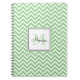 Personalisiertes Spiralnotebook mit Zickzack Muster in trendigem Weiß mit individuelle Name in schwarzem handgeschriebenem Schriftart und Monogramm in passendem Weiß-Quadrat.