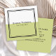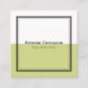 Modernes Design unterstreicht dieses einzigartige quadratische Visitenkartendesign in zweifarbigen Farbblöcken. Die Farben sind grün und weiß mit kontrastierendem schwarzen Text und einem doppelzeiligen Rahmen, der Ihren Text umgibt. Dieses vielseitige Design ist eine wunderbare Wahl für viele Berufe. Personalisieren Sie die Textvorlage auf beiden Seiten dieser Karte mit Ihren Daten.