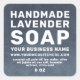 Moderner und minimaler handgefertigter Lavendel-Seifenaufkleber mit Ihrem Namen und Ihrer Website oder Adresse in weißer, schlichter, stylischer Typografie auf dunkelblauem Hintergrund. Fügen Sie einfach Ihren Firmennamen, den Produktnamen, die Inhaltsstoffe, das Gewicht und Ihre Website oder Adresse zum Etikett hinzu. Exklusiv für Sie entworfen von Happy Dolphin Studio. Wenn Sie Hilfe oder passende Produkte benötigen, kontaktieren Sie uns bitte unter happydolphinstudio@outlook.com.
