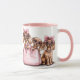 Niedliche Darstellung von modischen Hunden mit Schmuck und Brillen, die neben einer rosa Handtasche sitzen. Perfekt für Liebhaber von Mode und Haustier!