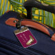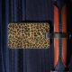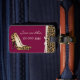Das Gepäckanhänger der schicken Dame wurde in Maron gefertigt, mit einer Grafik eines braunen und schwarzen Jaguar-Pelzmusters, mit einem Elfenbeinband und einem Paar Jaguar-Stiletto-High Heels vorne. Personalisieren Sie den Elfenbeintext so, dass er Ihre Bedürfnisse Anzug. Ein auffälliges Gepäckanhänger, das schwer zu übersehen ist.