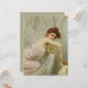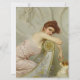 Dieses Design zeigt ein Gemälde des italienischen Künstlers Vittorio Matteo Corcos (1859-1933). Es zeigt eine attraktive und fein gekleidete junge Frau. Sie kniet spielerisch auf einer hölzernen Krone, während sie den Betrachter anschaut. Sie lehnt sich mit der Hand zu und streichelt ihren kleinen Haustier Welpen mit der Fingerspitze auf die Nase. Der Hund scheint bestürzt, aber von der Dame begeistert. Hinter der jungen Frau befinden sich elegante Steinfrieze im klassischen Stil, die zeigen, dass sie in einem sehr großen und opulenten Haus wohnt. Die Dame trägt ein niedrig geschnittenes rosa Kleid, das ihre schlanken Kurven zeigt. Sie hat keine Angst, ihre natürliche Schönheit zu zeigen. Der Welpen ist weiß mit braunem Gesicht und Ohren. Es hat auch einen rosa Kragen, der aus einem luxuriösen Stoff, um den Hals gebunden ist, besteht. Der Rand des Möbels, auf dem sich die Dame stützt, ist mit aufwändigen Mustern vergoldet. Das Originalwerk wurde 1895 von Vittorio Matteo Corcos gemalt.
