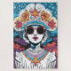 Dieses Rätsel zeigt eine farbenprächtige Vektorgrafik eines weiblichen ikonischen Trendsetters mit einem modischen Outfit, Blume dekorierten Hut, Vintage Kleidung, rosa Sonnenbrille und rotem Lippenstift. Das ist ein großes und herausforderndes Rätsel für Fashion-Rätsel.