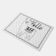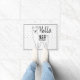 Schwarzweiss-Lamafußmatte in einer flüchtigen Art mit schwarzem Mikropunktmuster und dem Wort "hallo".