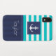 Moderner SeeiPhone XR Fall mit gestreiftem Muster des Türkis- u. Marineblaus und kundengerechtem Text.