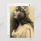 Vintages Foto einer jungen Frau, die in einem Profil dargestellt wird. Sie got einen Metallhut mit einer sternähnlichen Dekoration auf der Seite und einem großen runden, über dem Ohr hängenden Stück