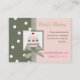 Stilvolle kundenspezifische Bäckereigeschäftskarte getan mit Grafiken eines hübschen rosa Kuchens, mitten in rosa und kakifarbigen und weißen Polkapunkthintergründen. Vervollkommnen Sie für ein Bäckereigeschäft, Partygeschäft oder einen unabhängigen kundenspezifischen Bäcker. Fertigen Sie die Textfelder besonders an, um für selbst oder Ihr Geschäft zu personifizieren.